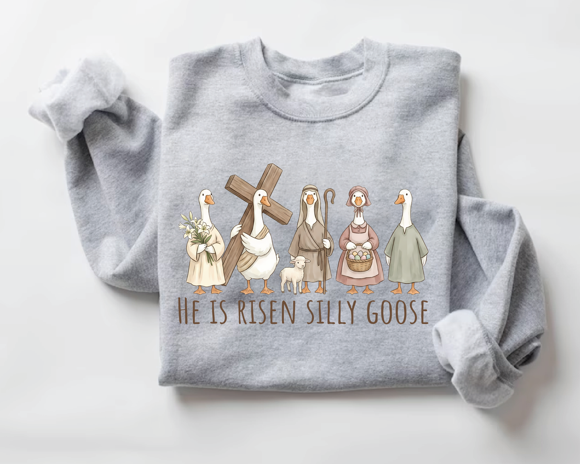 He Is Risen Silly Goose Sweatshirt - Funny Christian Easter Crewneck -