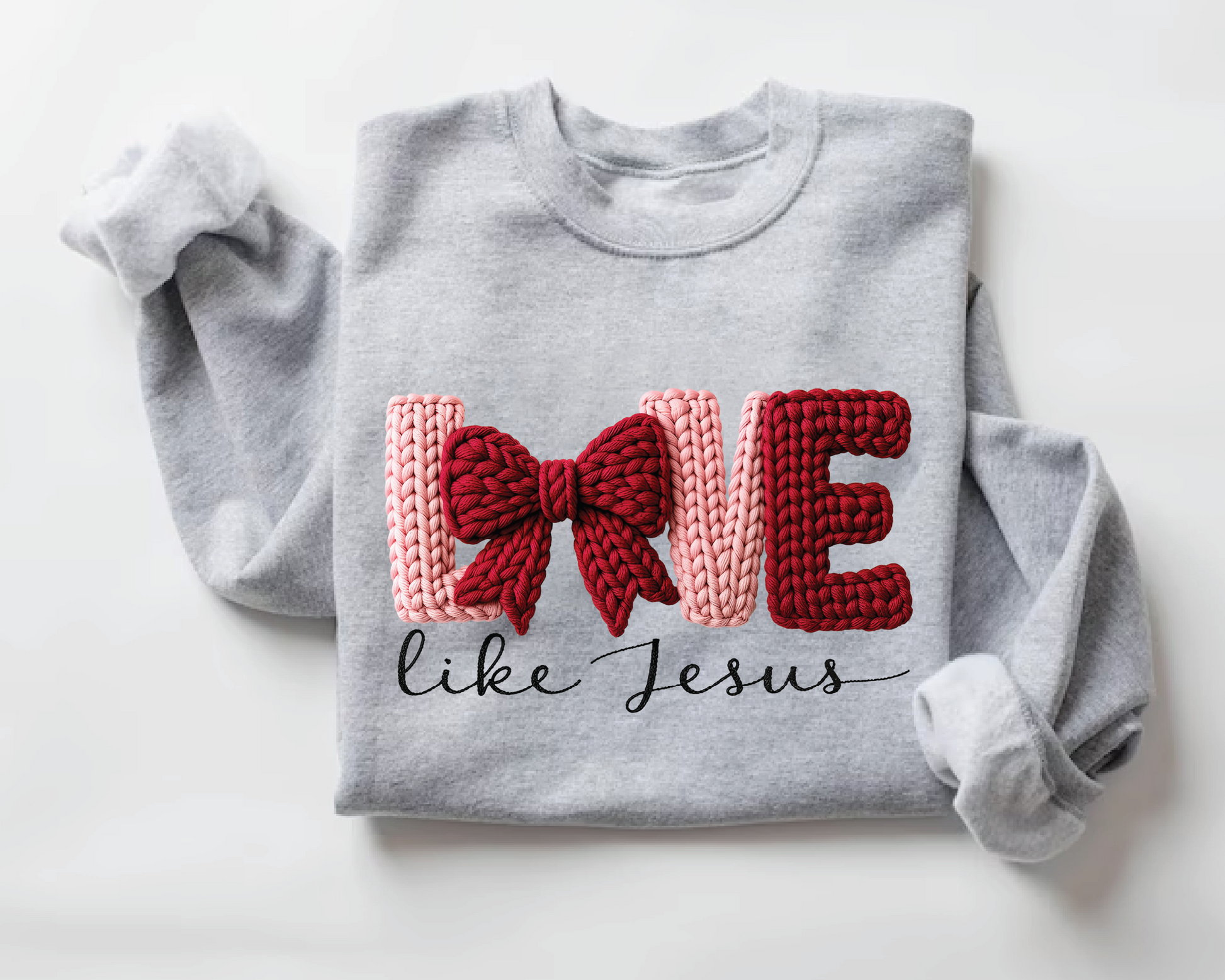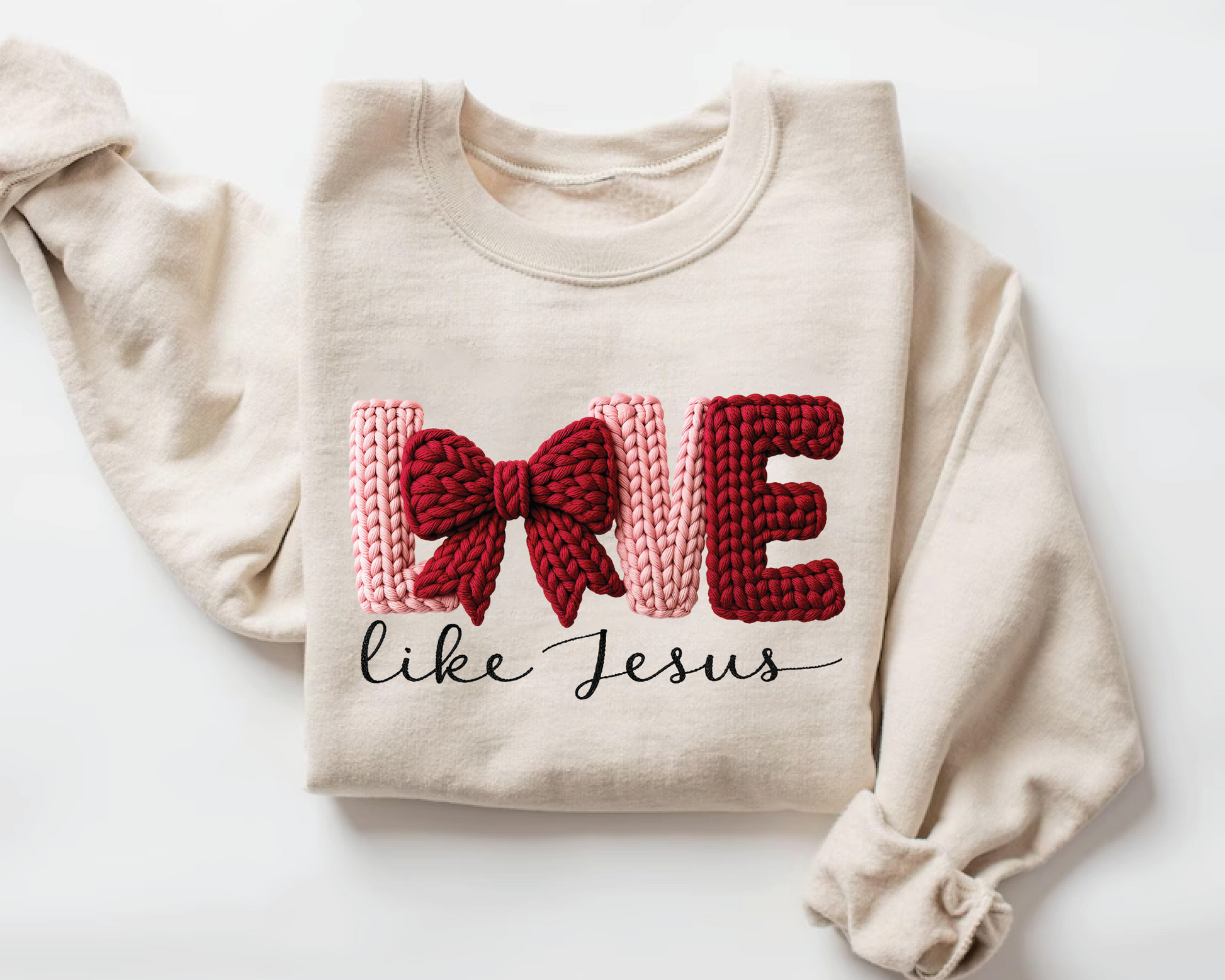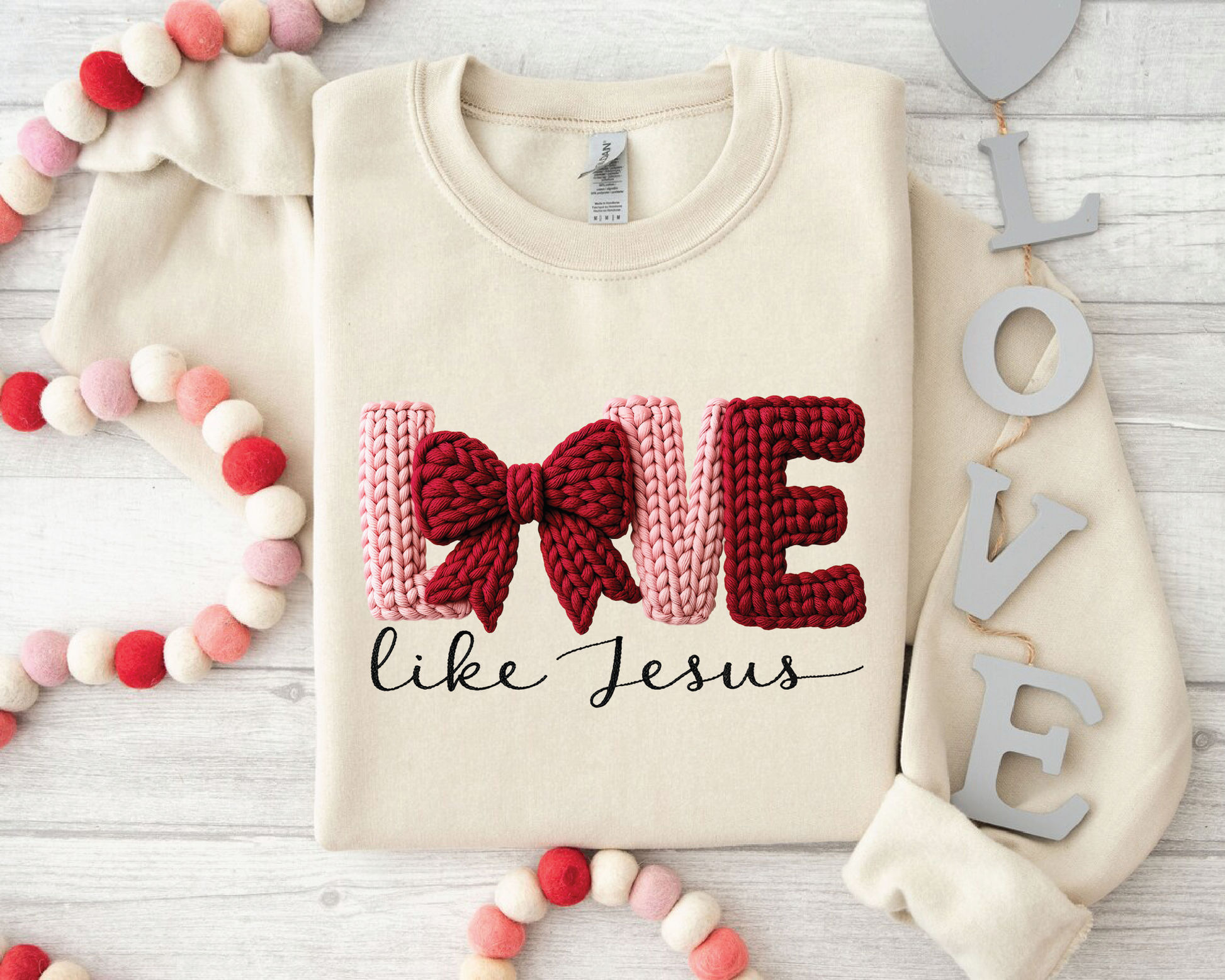 Love Like Jesus Sweatshirt - Coquette Faux Embroidery Christian Crewneck - VL18