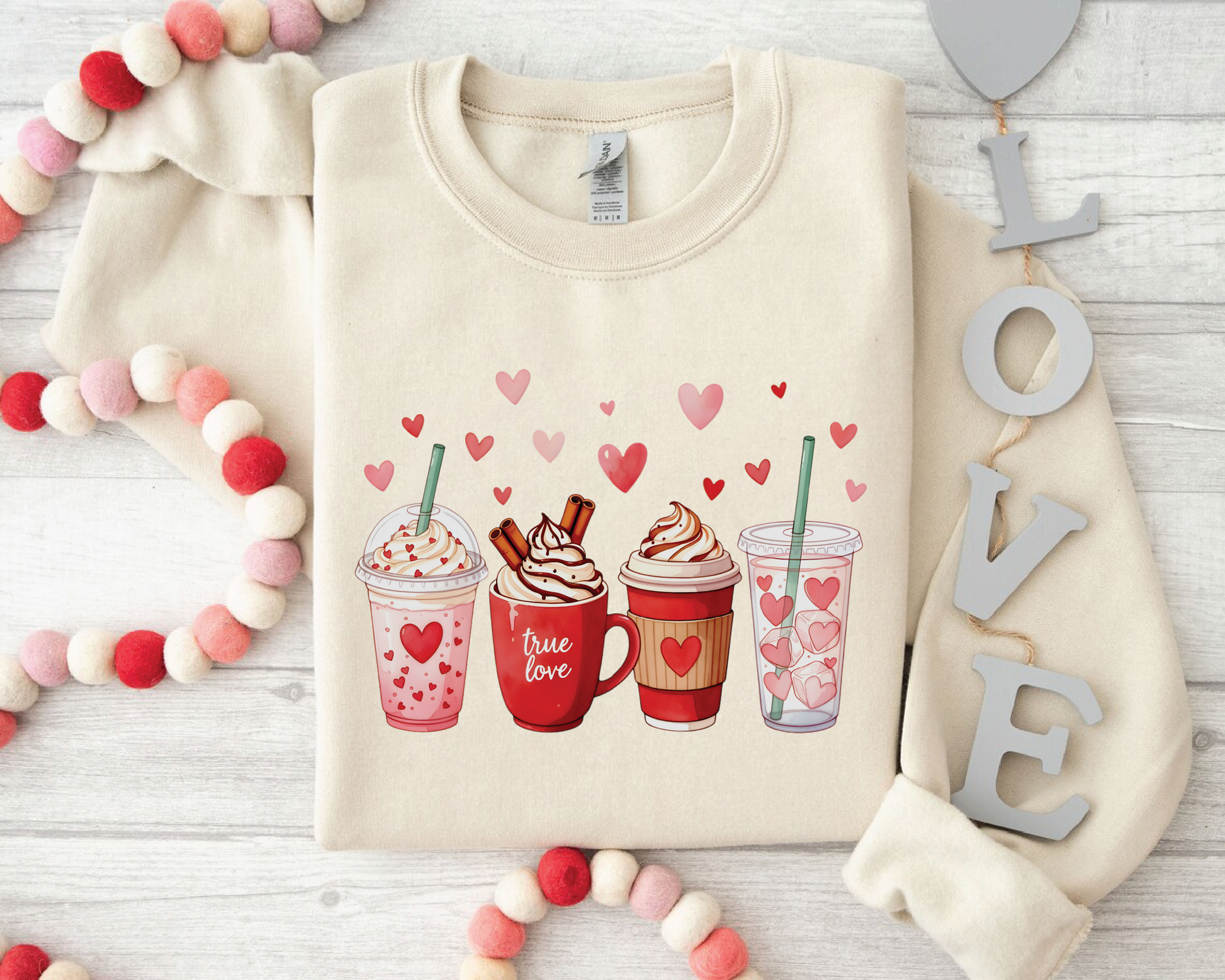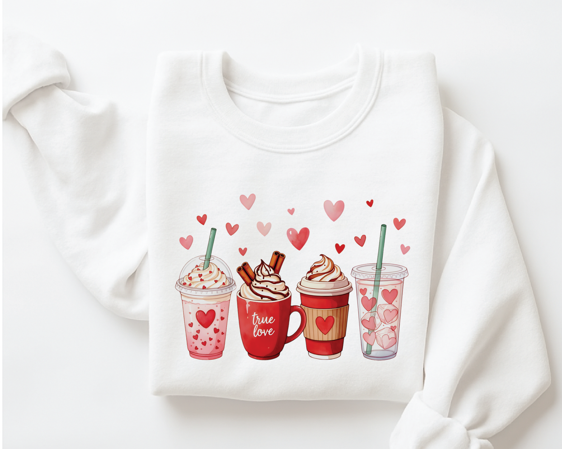 Valentine's Day Coffee Drinks Sweatshirt - Cute Latte & Iced Coffee Crewneck - VL41