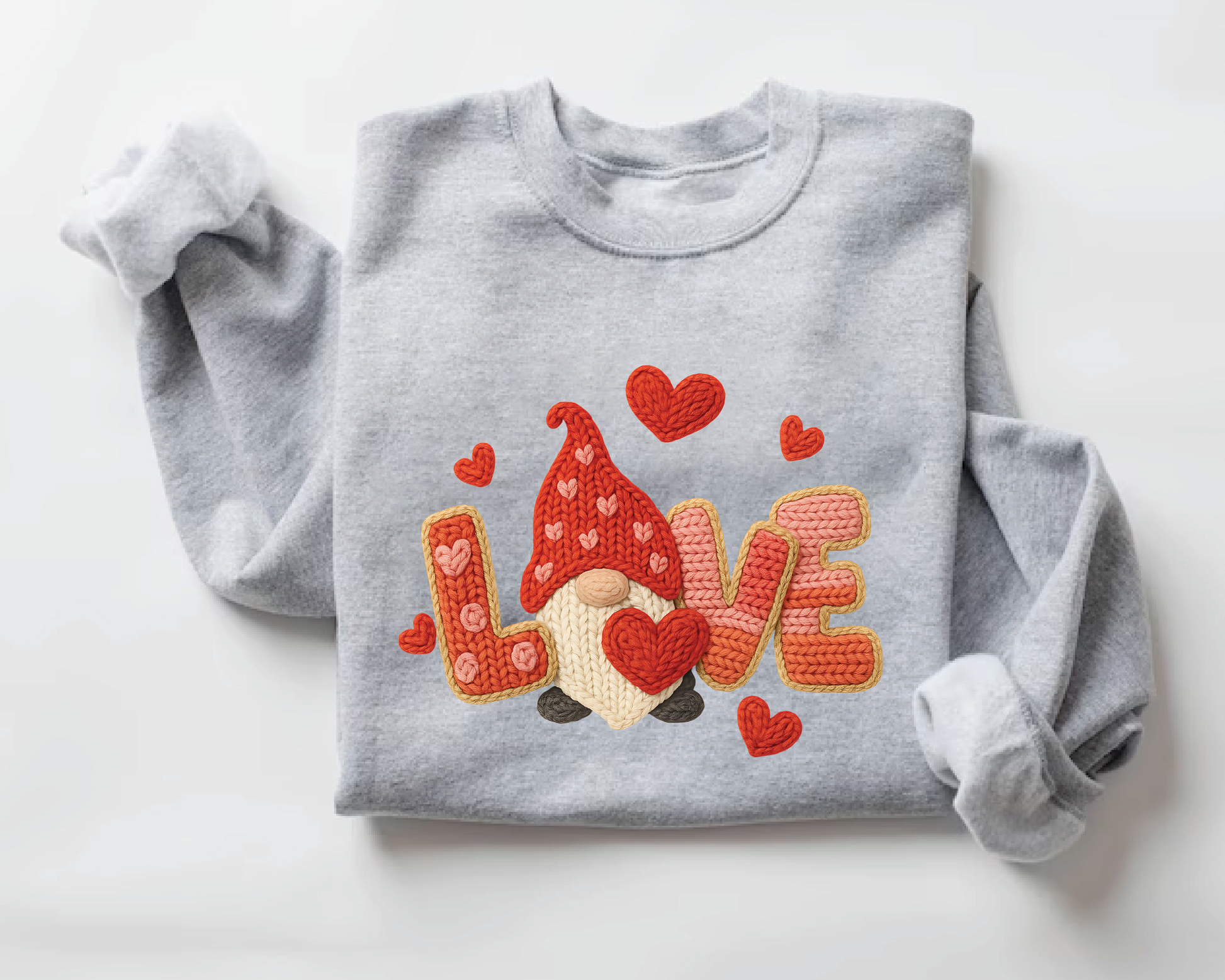 Valentine's Day Gnome Sweatshirt - Faux Embroidery Love Crewneck - vl20
